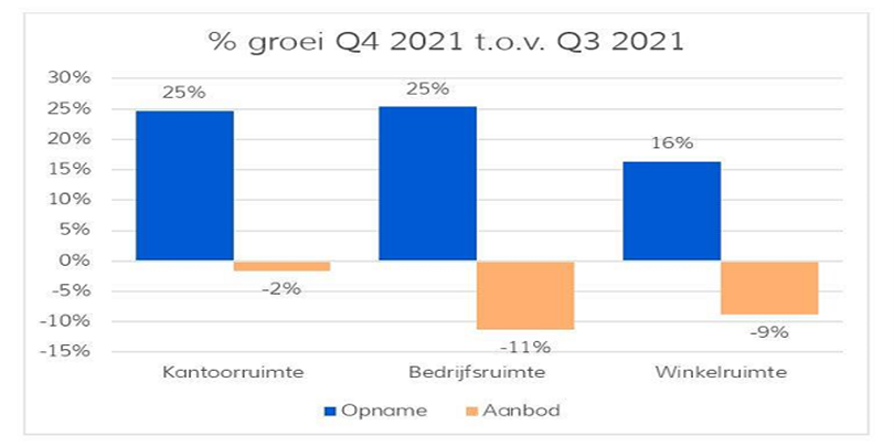 Een alternatief voor koopwoningen is de koop van een winkel of kantoor, zogeheten commercieel vastgoed. Volgens makelaarsvereniging NVM blijft de vraag hiernaar zeer groot. In het vierde kwartaal van 2021 is voor € 3,9 miljard belegd in commercieel vastgoed, 5% meer dan het kwartaal ervoor.